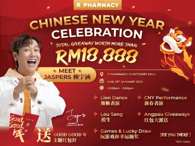 The Chinese New Year is just around the corner, and R Pharmacy is here to make your celebrations even more unforgettable with our GOOD GOOD Year campaign! 🧧 Ready to celebrate in style? With jaw-dropping discounts, exciting giveaways, and festive activities, this is the campaign you’ve been waiting for! 🏮 农历新年即将到来,R Pharmacy 为您准备了一场难忘的GOOD GOOD 年活动!✨准备好迎接一个充满惊喜与欢乐的新年了吗?超值折扣、惊喜赠品和丰富活动,这就是您期待已久的庆典!🏮…
