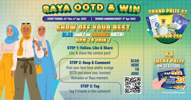 Get ready to strike a pose and share your funniest Raya moments! Join our RAYA OOTD & WIN giveaway and stand a chance to be one of our 5 creative winners! 🌙✨ 📅 Contest Period: 24/3/2025 – 6/4/2025📢 Winner Announcement: 9/4/2025 How to Participate: 1️⃣ Follow our official pages on [Facebook & Instagram] (@RPharmacy &…