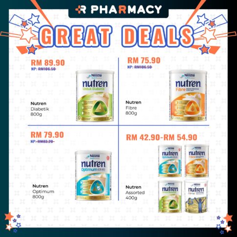 Stock up 🛒 on your essentials with Nutren Fibre 800g for only RM75.90 (NP: RM 106.50) and Nutren Diabetik 800g for RM89.90 ONLY (NP: RM 106.50). Plus, enjoy a Buy 1 Free 1 offer on Respack KN95 Face Masks and more!✨✨
