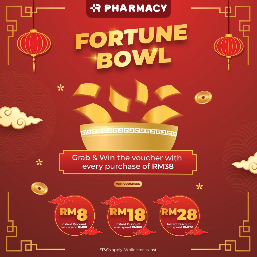 1. This Fortune Bowl Lucky Draw is open to all customers who make a purchase of RM38 storewide at any R Pharmacy outlet during the promotional period.