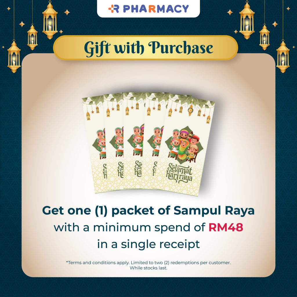 - The promotion is applicable for a free Sampul Raya Packet, with minimum spend of RM48 required.